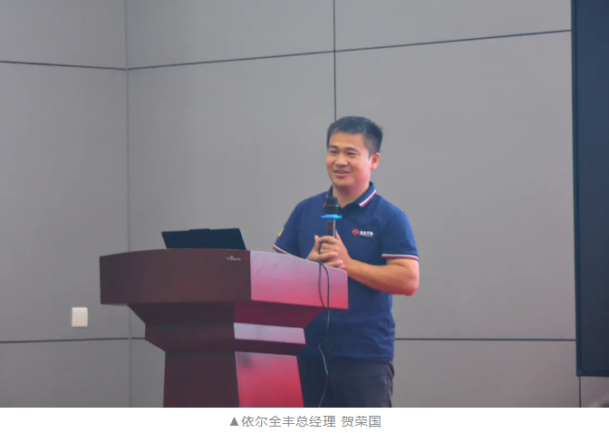 依爾全豐總經理賀榮國在會上對本次爭霸賽的意義、目標、要求及評比規則進行了詳細解讀。他指出,活動將以“標桿客戶打造、全員直播賦能、協同攻堅營銷”為核心,通過量化目標、動態評比的方式,充分激發團隊的潛能。他強調:“這場戰役不僅僅是銷量的比拼,更是對全豐服務模式與團隊執行力的全面檢驗?!?/span>